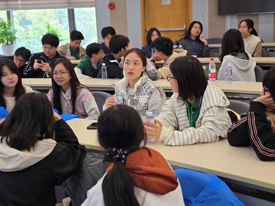 来自复旦大学经济学院不同专业的五位本科同学,徐紫翎、王路翔、洪雯姗、陈卓和王靖僮参与交流,并和各自同学分享了经济学院的学习体会。